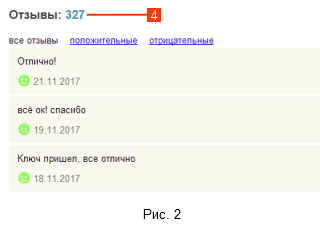 Если присутствуют отрицательные или положительные отзывы 4, обязательно ознакомьтесь с их содержимым (рис.2).